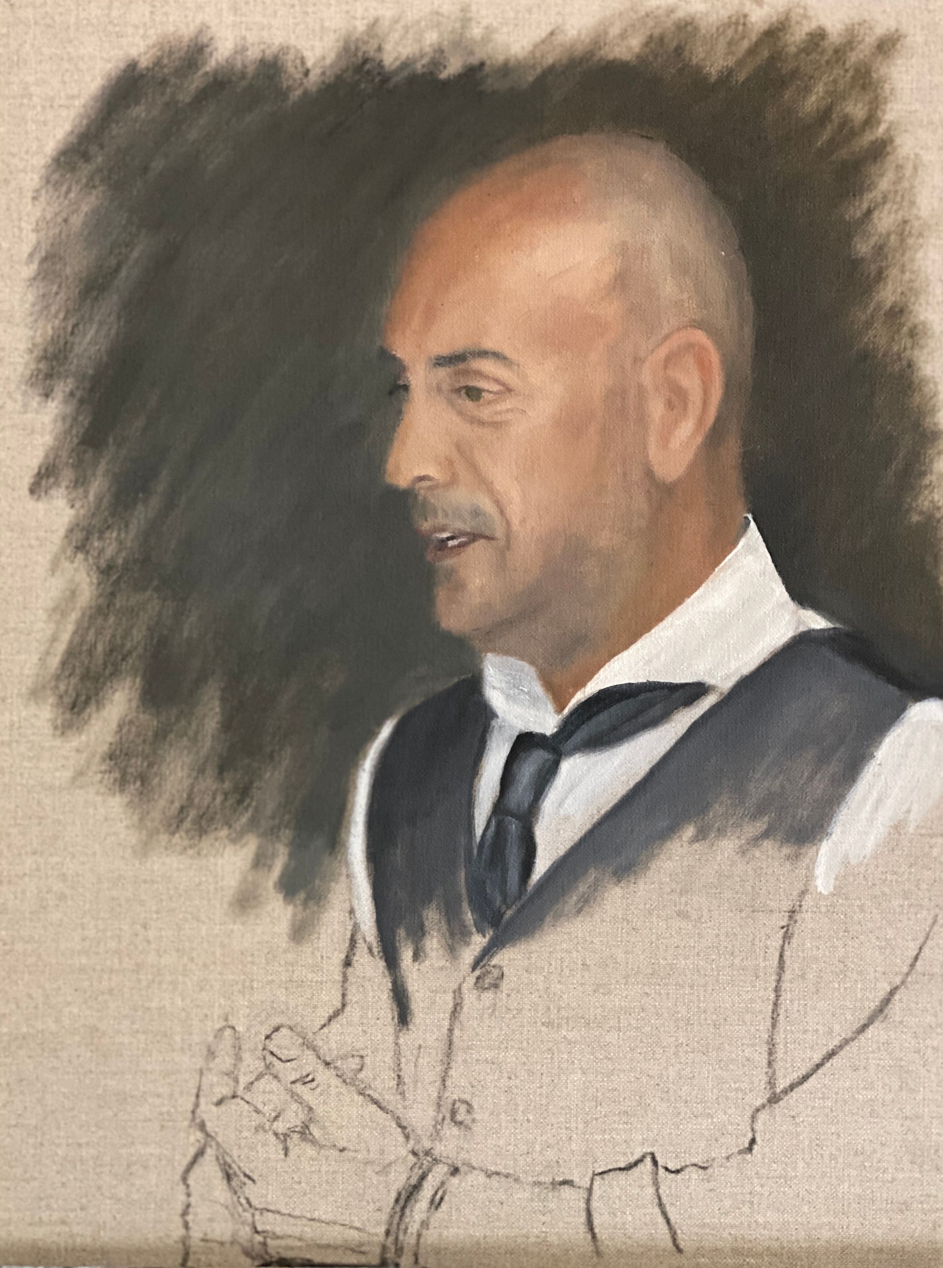 A summer class at Central St Martin's in 2010 inspired me to take oil painting more seriously. After several years of self tuition I was able during lockdown to concentrate more fully on honing my skills through a number of online courses and in person classes at the Heatherley in Chelsea. After a month in Venice I recently had the most transformative time at the Charles Cecil studio in Florence and have since focussed mainly on portraiture.